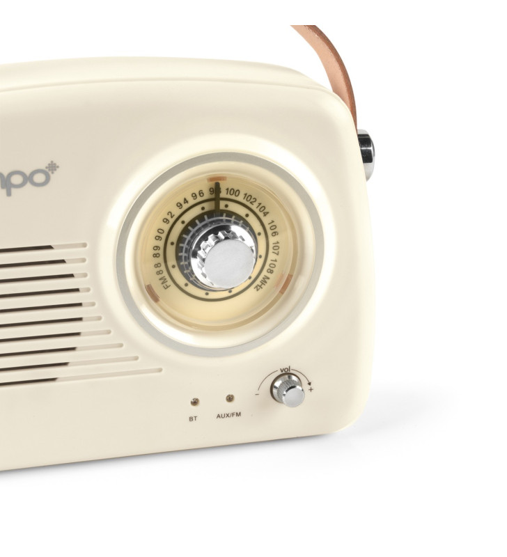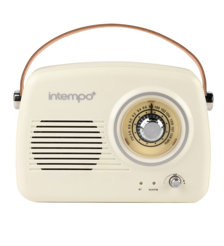 Enjoy your favourite music and radio stations in style with the Intempo 2-in-1 Bluetooth Speaker with FM Radio. Inspired by a classic vintage design, this elegant and compact speaker blends retro aesthetics with modern wireless technology.