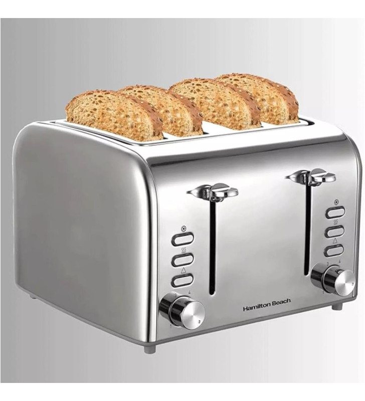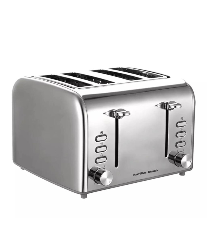 Make breakfast easier with the Hamilton Beach Rise 4 Slice Toaster. With 6 browning levels, dual crumb trays, and a premium stainless steel finish, it's perfect for busy households.