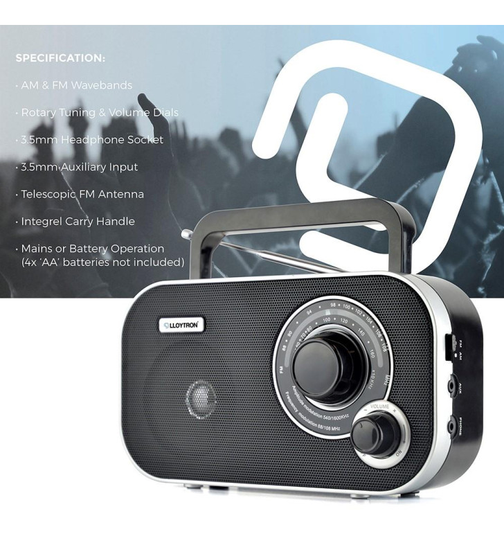 Enjoy reliable radio listening at home or on the go with the AM/FM Portable Radio. This 2-band AC/DC radio features AM and FM wavebands with easy-to-use rotary volume and tuning controls for a classic, user-friendly experience. A telescopic swivel antenna ensures clear signal reception, while the integrated carry handle makes it convenient to take with you wherever you go. For private listening, simply plug in your headphones using the built-in headphone socket. The radio can be powered by mains electricity (mains lead included) or 4 x AA batteries (not included), giving you flexible power options for any situation.
