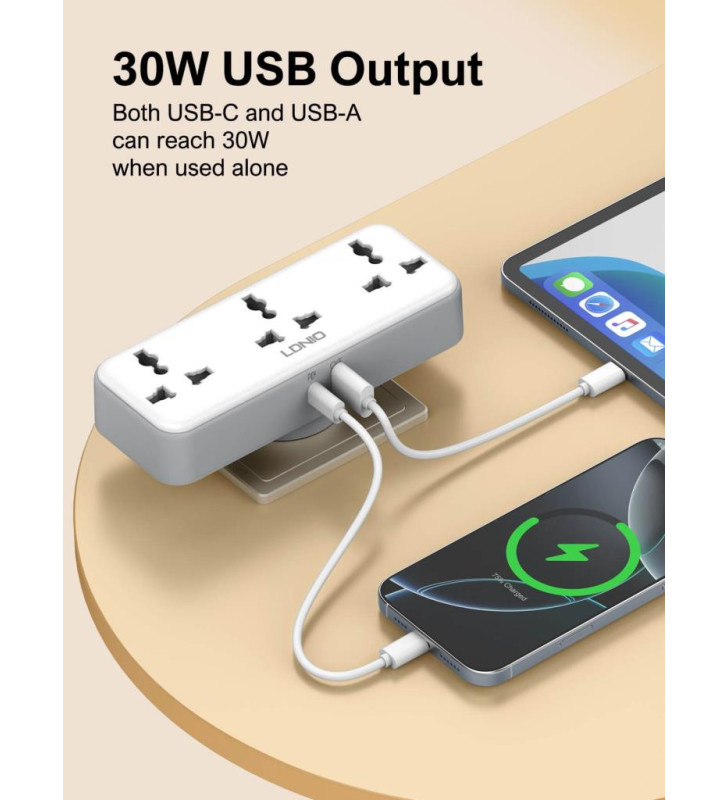 LD 3-Way Rotatable Plug Extension with USB-C & USB-A Ports