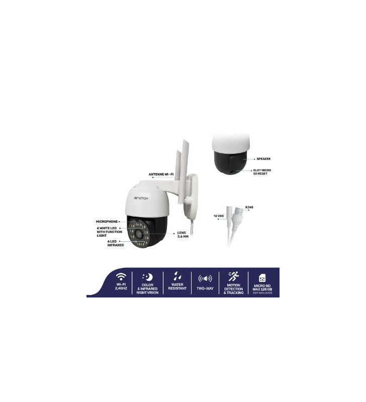 Smart 2K (3MP) outdoor WiFi PTZ camera with 355° pan & 90° tilt, motion tracking, two-way audio, colour/IR night vision, and HeySmart App control.