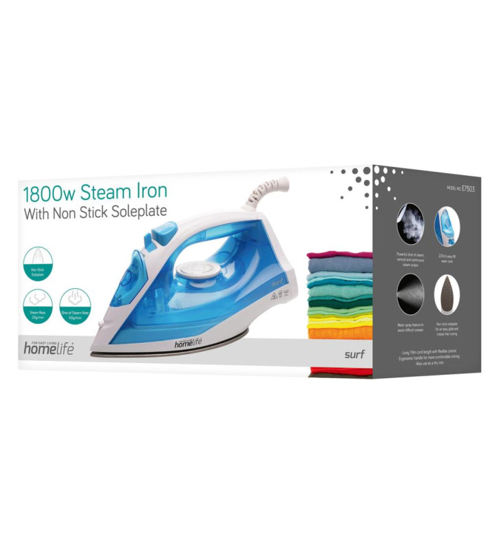Achieve perfectly pressed clothes every time with the Lloytron 1800W Steam Iron, featuring a non-stick soleplate that glides smoothly across all fabric types. Designed for convenience and performance, it combines steam and dry ironing options to tackle everything from light wrinkles to stubborn creases with ease.