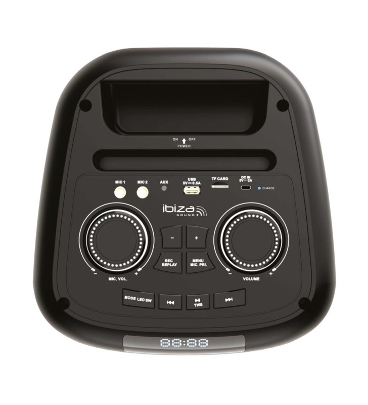 Turn up the energy with the IBIZA COLUMBA 700W BT LED TWS Speaker — a powerhouse portable sound system built for parties, events, and performances. With dual 8" woofers and 1" tweeters, it delivers rich, full-range audio with a maximum power output of 700 watts.