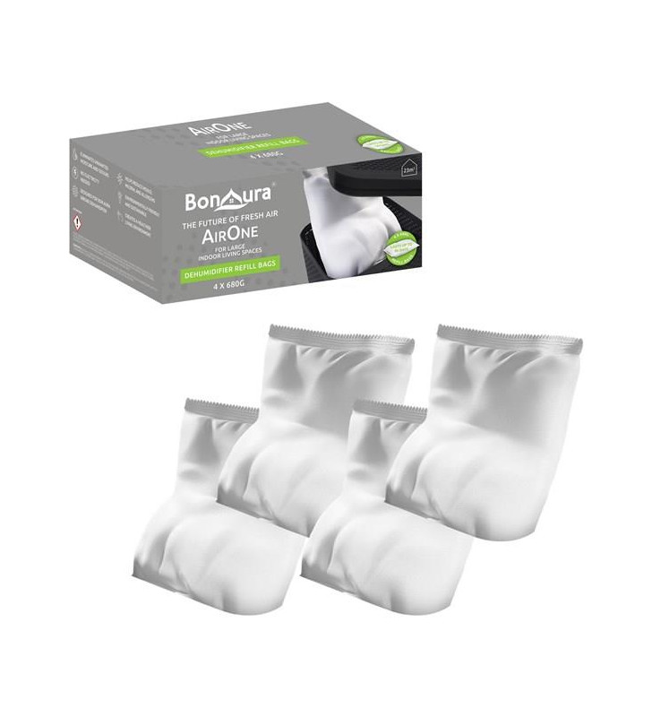 Maintain a comfortable, moisture-free environment with the BonAura AirOne Classic Dehumidifier Refill Set (4 Pack, 680g).