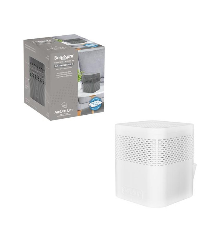 Experience fresh, dry air with the BonAura AirOne Lite 450g Dehumidifier — a stylish, non-electric solution for moisture control in smaller spaces. Designed for rooms up to 16 m² (36 m³), this compact unit helps prevent dampness, mould, and musty odours, keeping your home clean and comfortable.