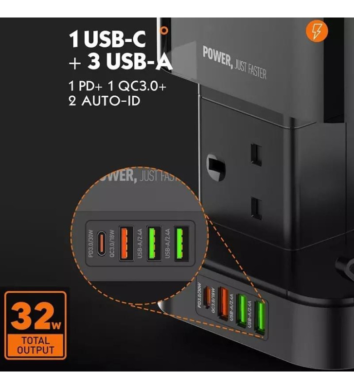 1 QC3.0 + 1 PD + 2 AUTO-ID USB Ports