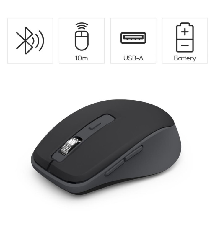 Hama “WM-450” Multi-Device Mouse, Wireless, Radio/Bluetooth, 7 Buttons, . Connect multiple devices without a cable: the optical 7-button mouse with scroll wheel allows the wireless control of a PC, tablet and laptop via Bluetooth or radio in combination with the USB-A receiver