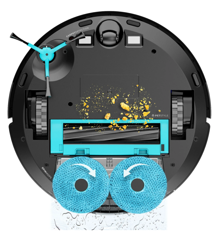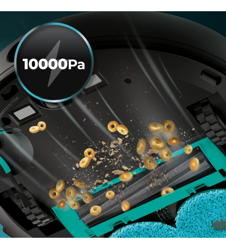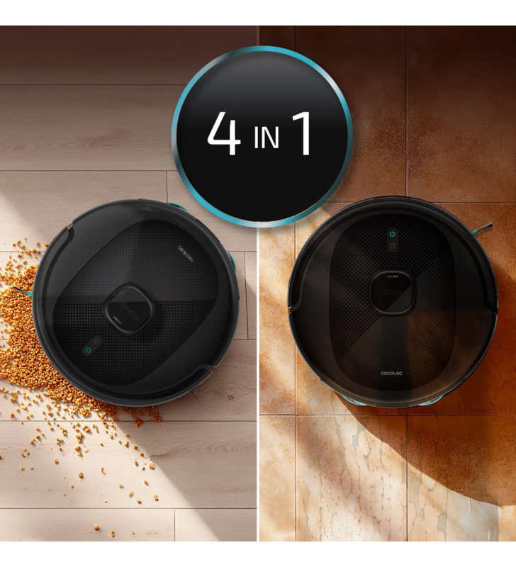 Spin Wet Mops. Innovative mopping system with two mops that spin at full speed, constantly wet and press the floor to remove even the toughest stains. Perfect scrubbing. Spin scrubbing system removes dirt and stains effectively and quickly to leave the floor shiny. Connect with Conga, forget the mop and enjoy a shiny floor. 10,000Pa: Ultra power. Its Ungravity motor delivers 10,000 Pa suction, a power that is able to suck up extreme dirt on any surface, even on tall carpets.