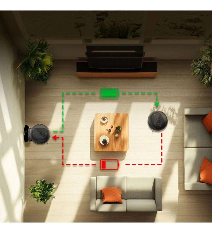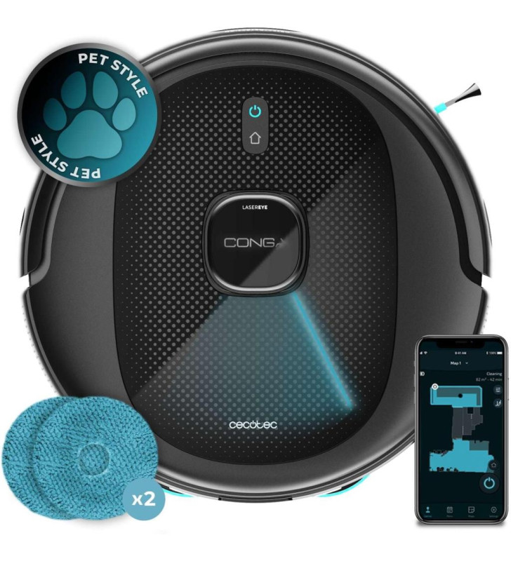 Cecotec Conga 9590 Spin Revolution Ultra Power Home Robot Vacuum Cleaner and Floor Scrubber with Self-Empty Base, 10000Pa, Laser Navigation, 240mins Autonomy, Mops, Silicone Brush and Pets. App Laser navigation, precise cleaning. The robot features laser technology that allows it to generate a map to navigate accurately and effectively clean every last corner. In addition, this navigation system allows you to clean accurately even without light.