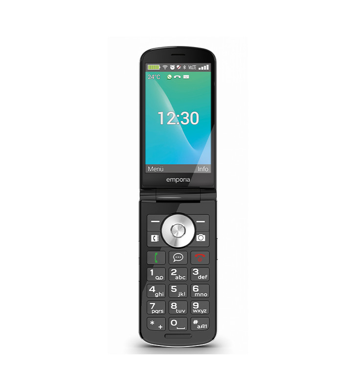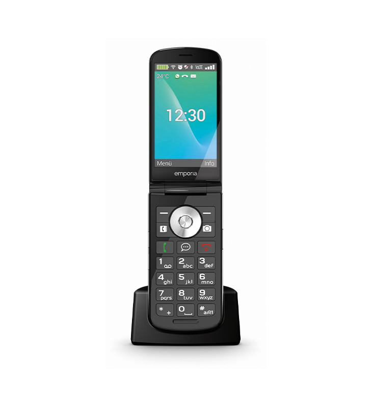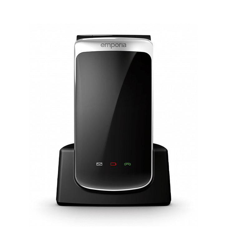 The emporiaTOUCHsmart 3 combines the simplicity of a flip phone with modern smartphone features — including WhatsApp, touchscreen display, emergency button, and easy charging cradle.