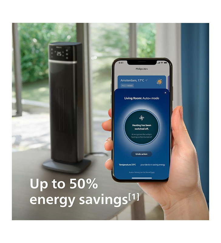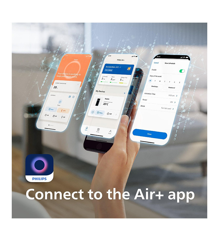 Control your comfort anytime, anywhere. Simply connect via the Philips Air+ app to adjust temperatures, schedule heating times, or monitor energy usage directly from your smartphone.