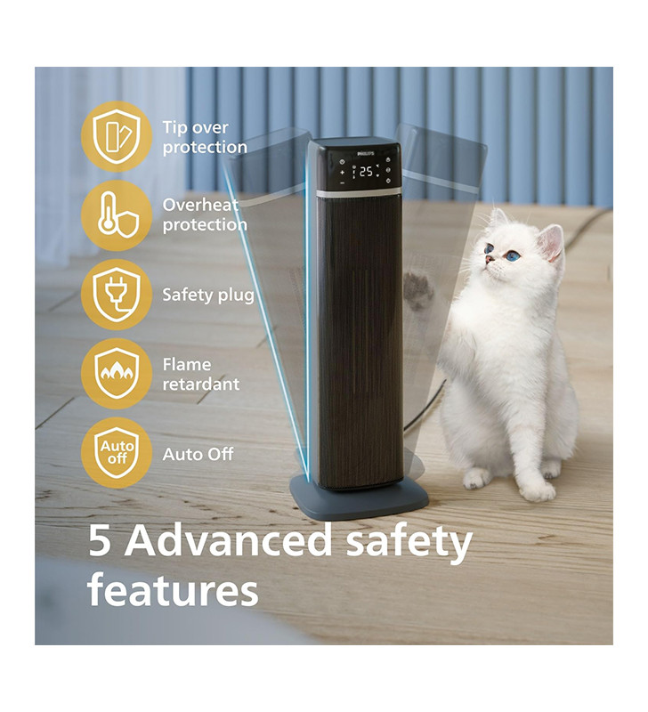 Stay warm and save energy with the Philips CX5120/11 Smart Ceramic Fan Heater. Featuring rapid 2-second heating, AI-powered energy efficiency, smart app control, and 5 safety features for ultimate comfort and peace of mind.