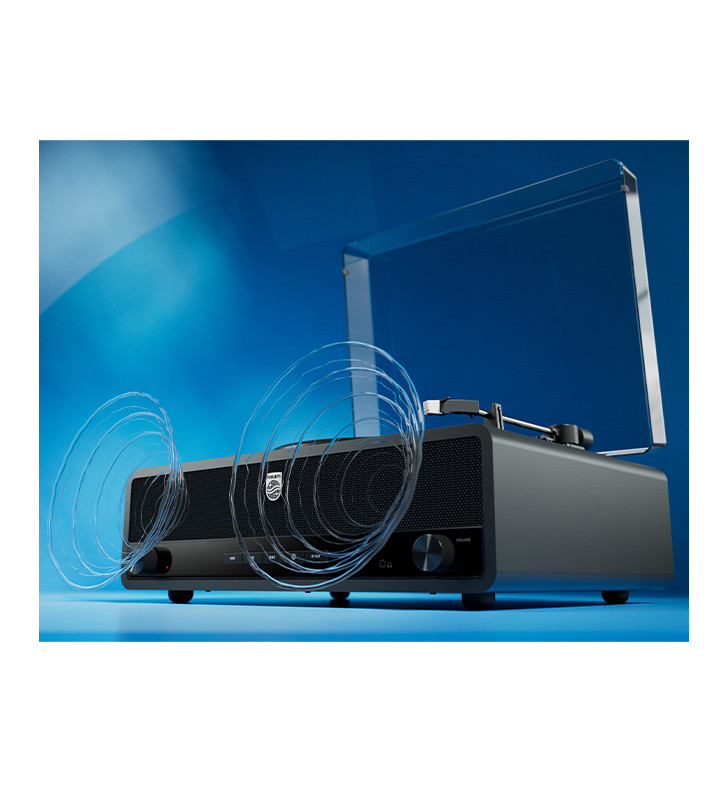Celebrate timeless sound with the Philips CENTURY TAV3000B/10 “The Stevie” Bluetooth Turntable — a perfect blend of retro charm and cutting-edge audio innovation. Inspired by Philips’ classic designs from the 1930s and 1950s, The Stevie delivers warm, analogue sound with the convenience of today’s wireless technology.