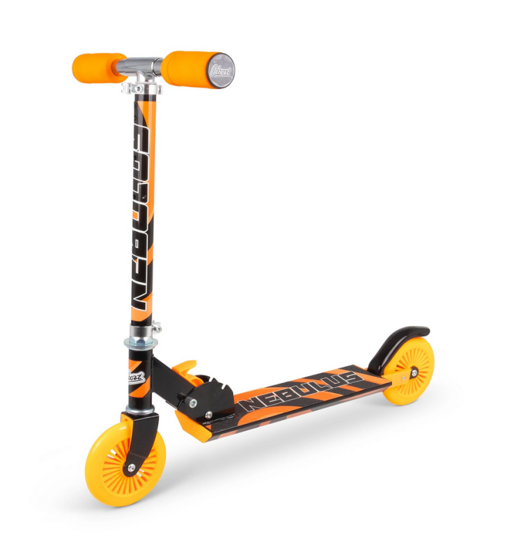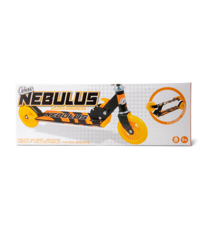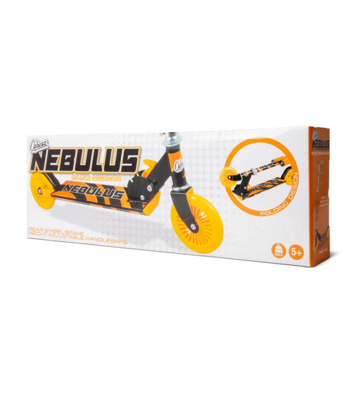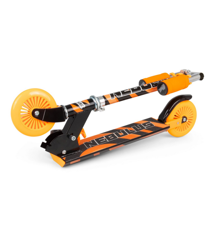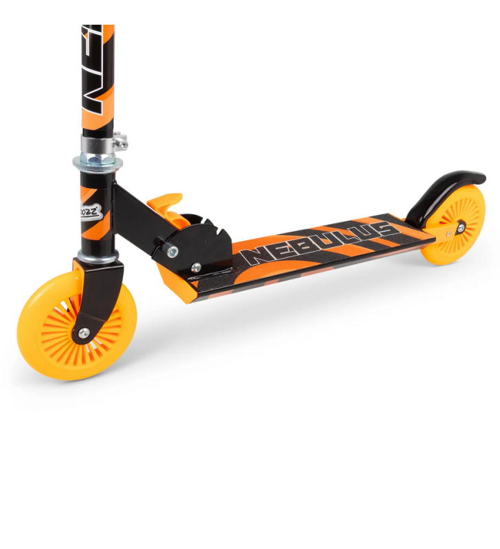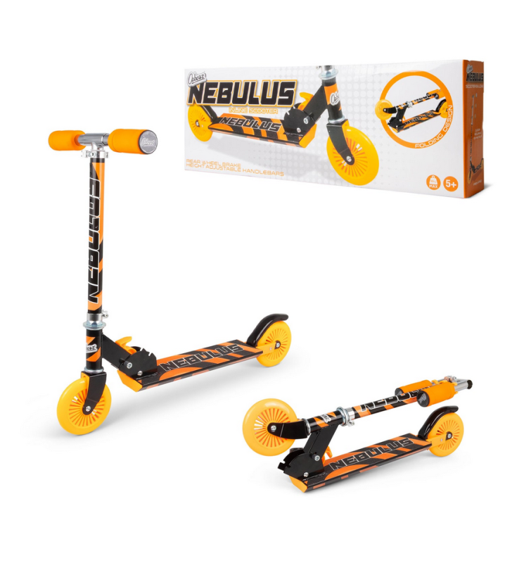 Ready, set, glide with the Nebulus Scooter in eye-catching Neon Orange! Perfect for kids of all ages, it features handlebars that adjust quickly to fit any height, making every ride comfortable and fun. The easy-to-use foot brake above the back wheel helps your little one stop smoothly and safely. When playtime is over, fold it down instantly for super simple storage and transport.