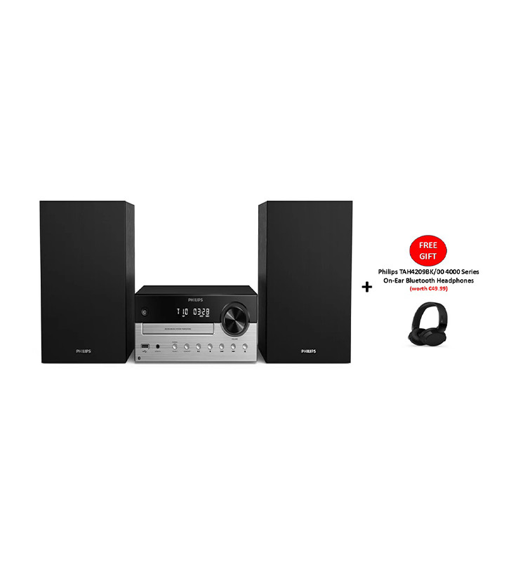 Whether you’re streaming, spinning CDs, or tuning in to the latest radio hits, the Philips Micro Music System brings premium sound, elegant design, and eco-friendly craftsmanship together in one versatile setup.