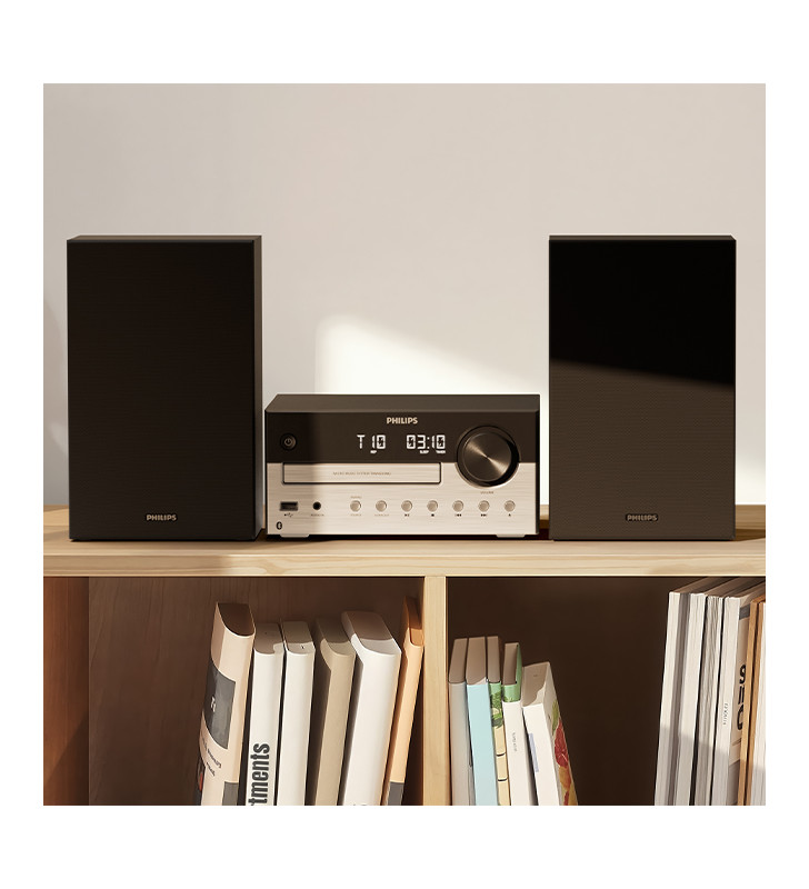 Fill your home with rich, powerful 80 W sound. The Philips TAM4205M2/12 Micro Music System offers Bluetooth 5.4 streaming, CD, USB, FM, and Auracast™ connectivity—all in a sleek, compact design.