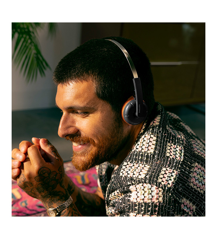 Comfort comes first with a featherlight adjustable headband and soft ear cushions—plus two spare pairs included. Classic rounded earcups evoke vintage cassette-player vibes, but inside, it’s all modern tech. Control playback, volume, and calls easily with on-ear buttons, or fine-tune your sound using the Philips Headphones App, which offers dynamic bass and firmware updates