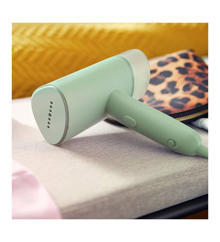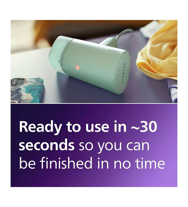 Freshen up clothes anywhere with the Philips 3000 Series Handheld Steamer. Compact, foldable, and ready in 30 seconds — no ironing board needed for quick touch-ups.