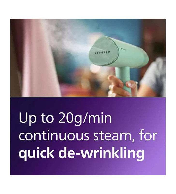 Say goodbye to creased clothes and bulky ironing boards with the Philips 3000 Series Handheld Steamer — your compact and foldable solution for quick, easy, and hygienic garment care.