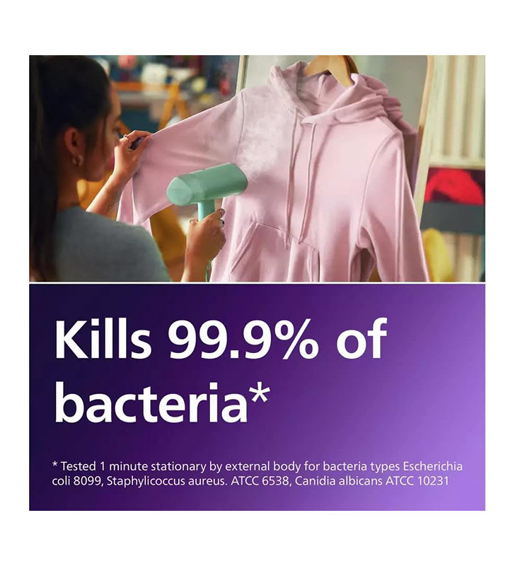 More than just a wrinkle remover, the Philips 3000 Series steamer helps keep garments fresh and hygienic. Its hot steam kills 99.9% of bacteria, refreshes fabrics, and removes odours — allowing you to wash and iron less while extending the life of your favourite pieces.