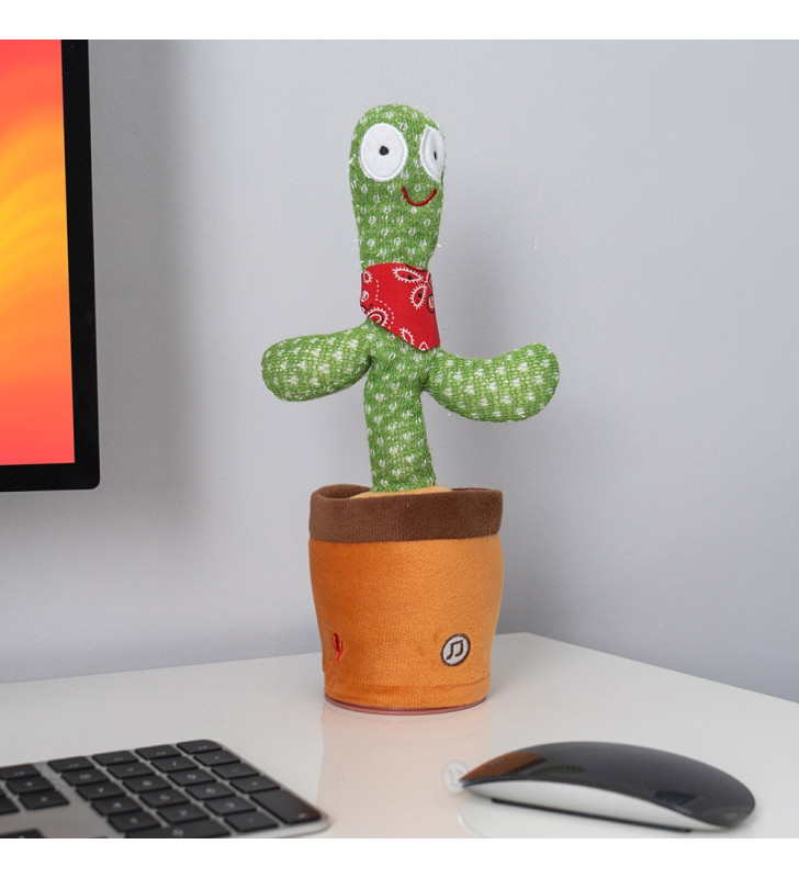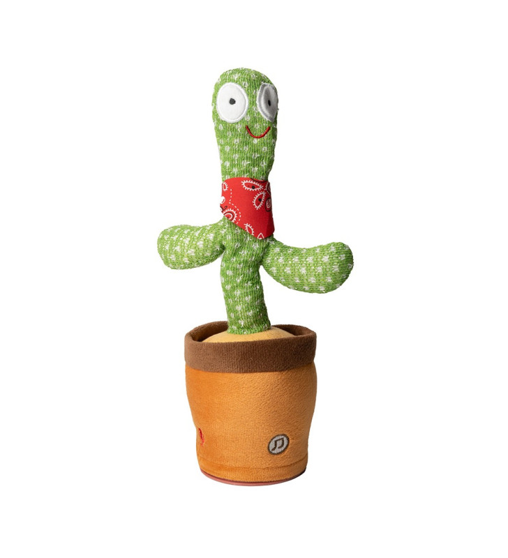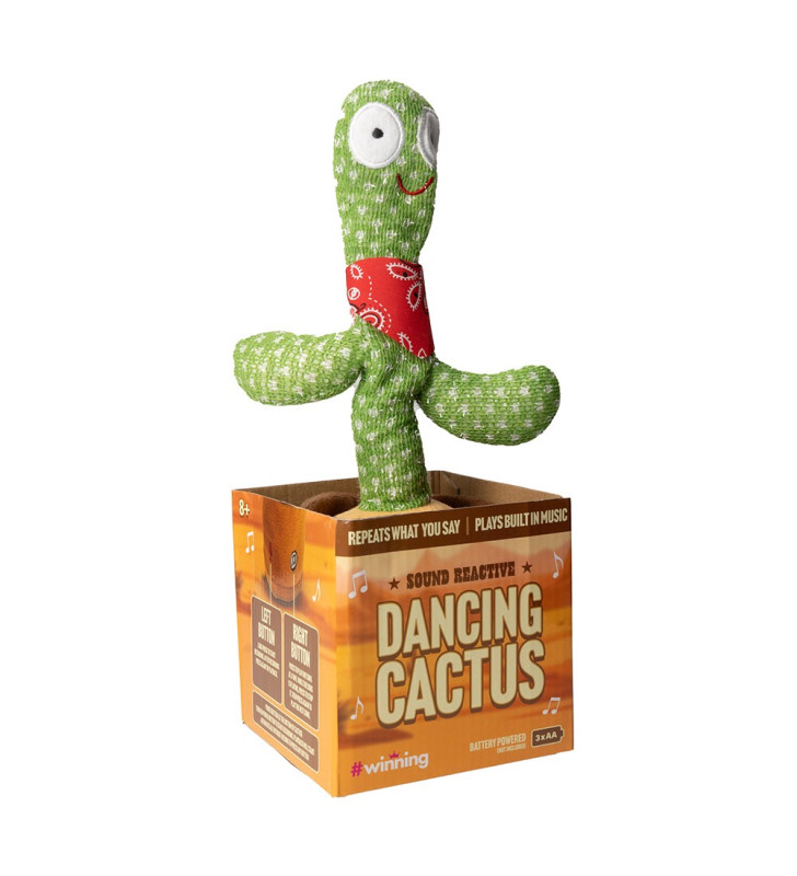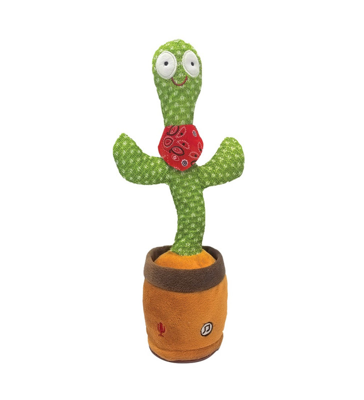 The Dancing Cactus is an interactive toy that sings, dances, and repeats what you say. Features built-in songs, a 60-second voice recorder, and easy button controls. Powered by 3×AA batteries (not included).