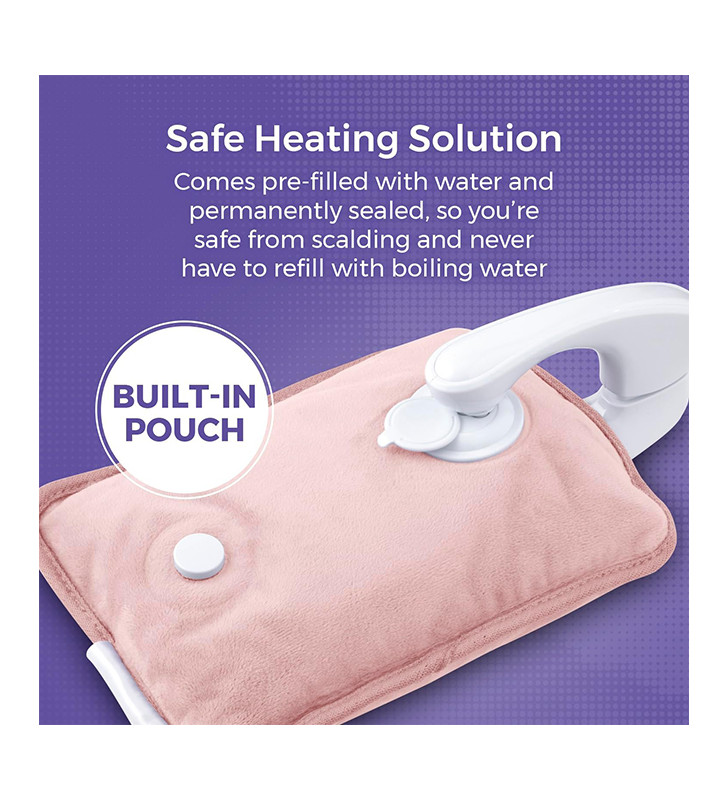 This rechargeable hot water bottle comes pre-filled with water already inside and permanently sealed so you never have to worry about refilling, leaks or scalding from boiling water