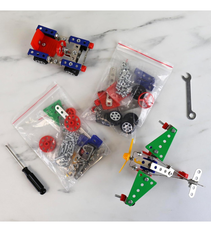 This engaging kit includes all the components, tools, and full instructions needed to construct both a miniature car and an aeroplane. Kids can follow simple step-by-step guidance to assemble their creations, helping to develop problem-solving skills, hand-eye coordination, and confidence through building.