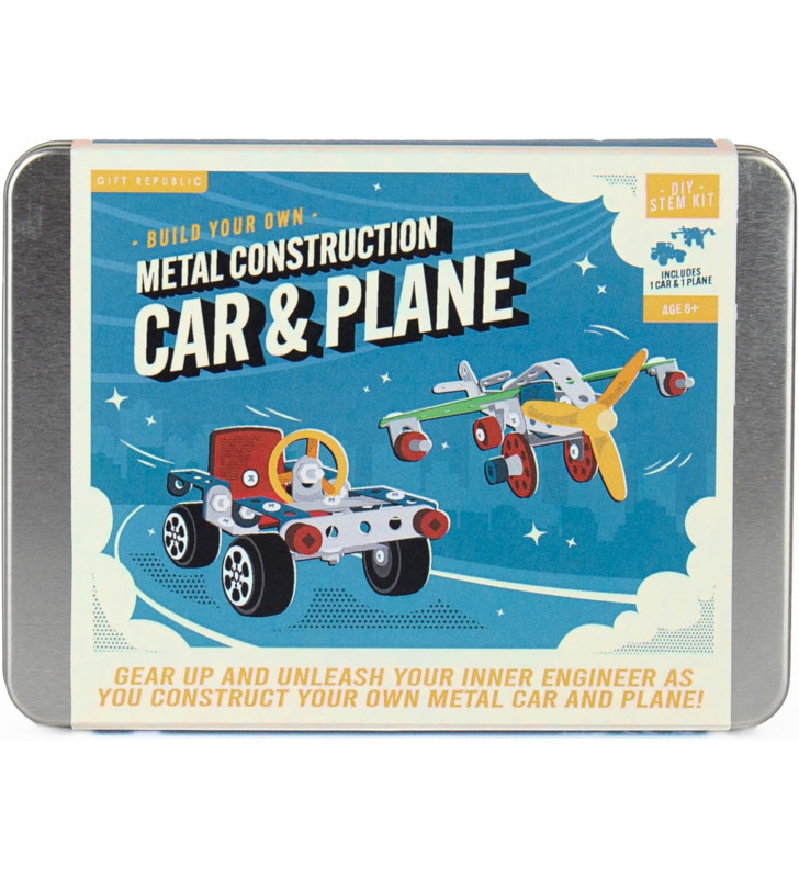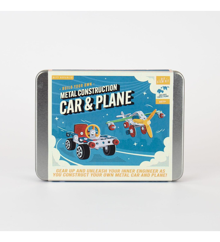 A colourful STEM mechanic kit containing all tools and parts needed to build both a car and an aeroplane. Packed in a portable tin and perfect for budding young engineers aged 6+.