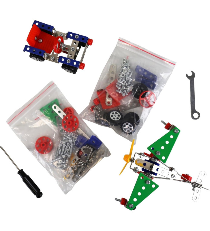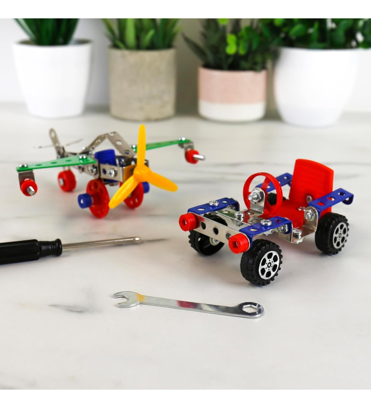 This 60-piece mechanic set includes everything needed to assemble a fully constructed car and aeroplane, complete with tools and easy-to-follow instructions. Made from durable metal and plastic parts, each model is fun to build and satisfying to complete.