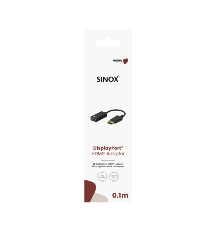 The Sinox DisplayPort™ (Male) to HDMI™ (Female) Adapter is the ideal solution for connecting your computer to a TV or external display. With a DisplayPort™ 1.4 interface, this adapter supports modern PC and laptop output standards, ensuring a stable and high-quality connection to HDMI displays.