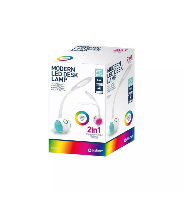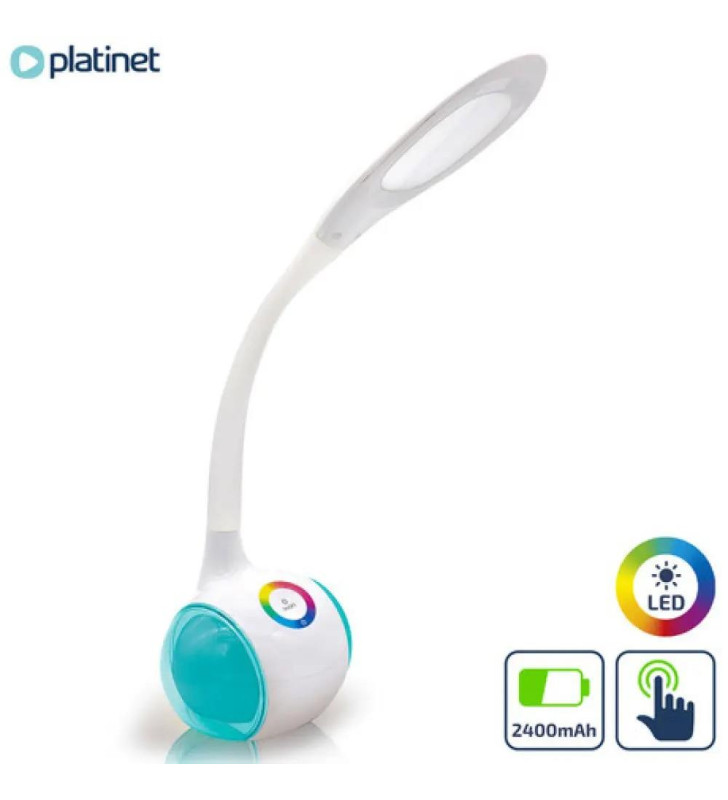 Brighten your workspace or bedroom with the Platinet USB Rechargeable LED Desk Lamp, a modern and versatile lighting solution featuring a built-in 2400mAh battery, dimmable controls, and an RGB night-light base. Designed for both work and relaxation, this lamp offers adjustable brightness, adjustable colour temperature, and a wide 120° light angle for optimal illumination in any setting.