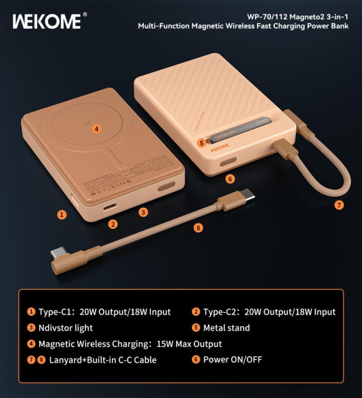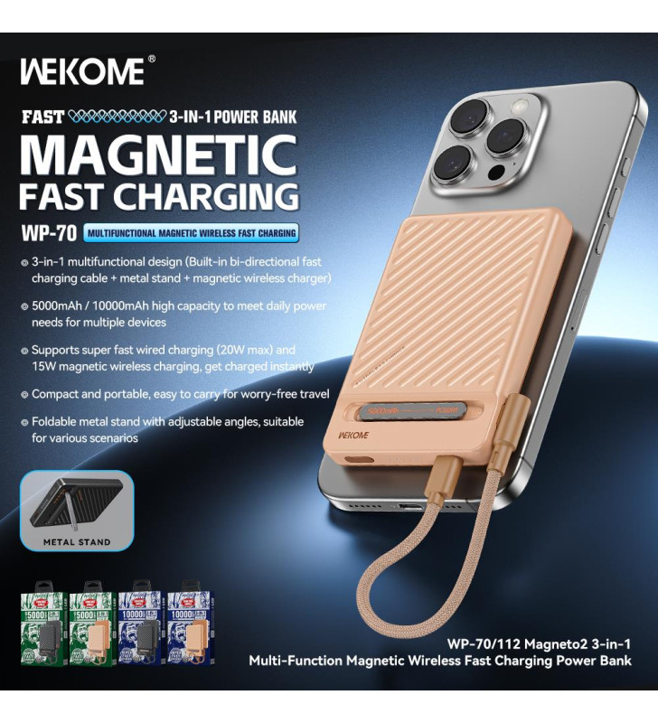 WEKOME AGNETIC 2 3IN1 WIRELESS FAST CHARGING POWER BANK