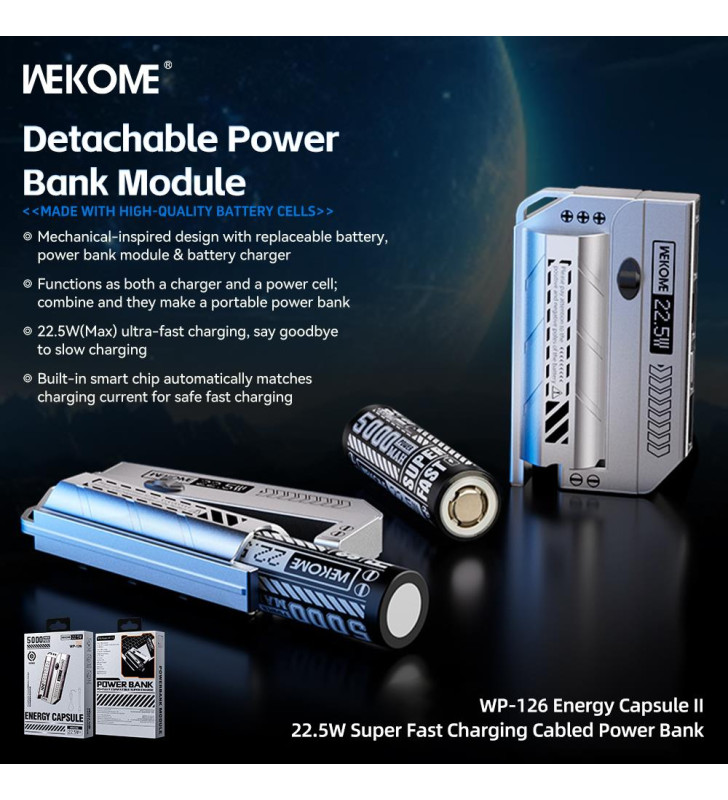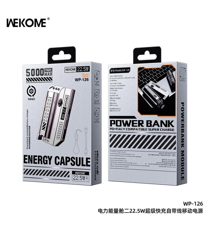 WEKOME 5000mah 22.5W ENERGY CAPSULE II CABLED POWER BANK