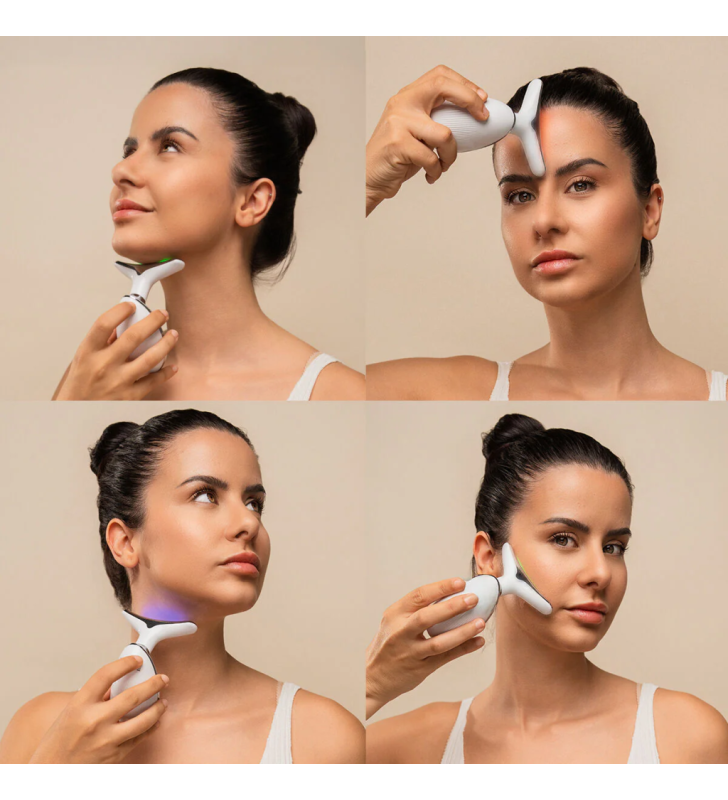 This electric facial massage device is designed to offer firmness, elasticity, and radiance to the skin of the face and neck.