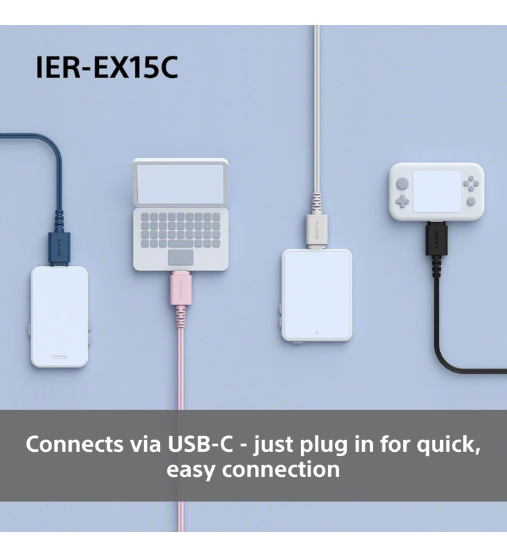 Experience simple, reliable, high-quality audio with the Sony IER-EX15C USB-C Wired In-ear Headphones. Designed for modern devices, these versatile earbuds connect directly via USB-C, making them ideal for Android and iOS phones, tablets, laptops, and PCs, all without adapters, pairing, or charging.