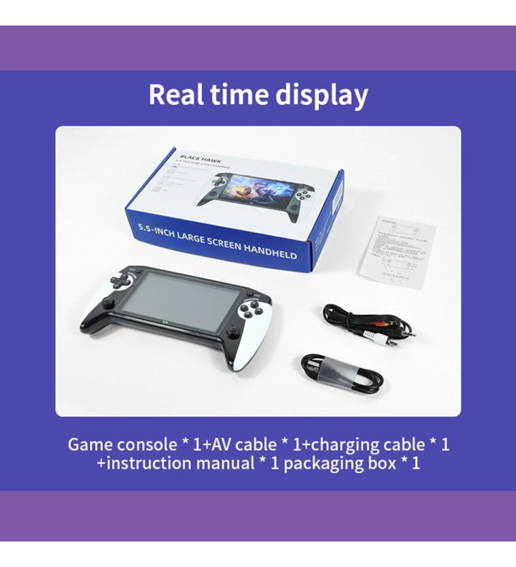 The Black Hawk Retro Game Console (Model X9) delivers a complete retro gaming experience in a sleek, portable design. With a vibrant 5.5-inch HD display, rich 16M colours, and powerful built-in speaker, your favourite classics look and sound better than ever.