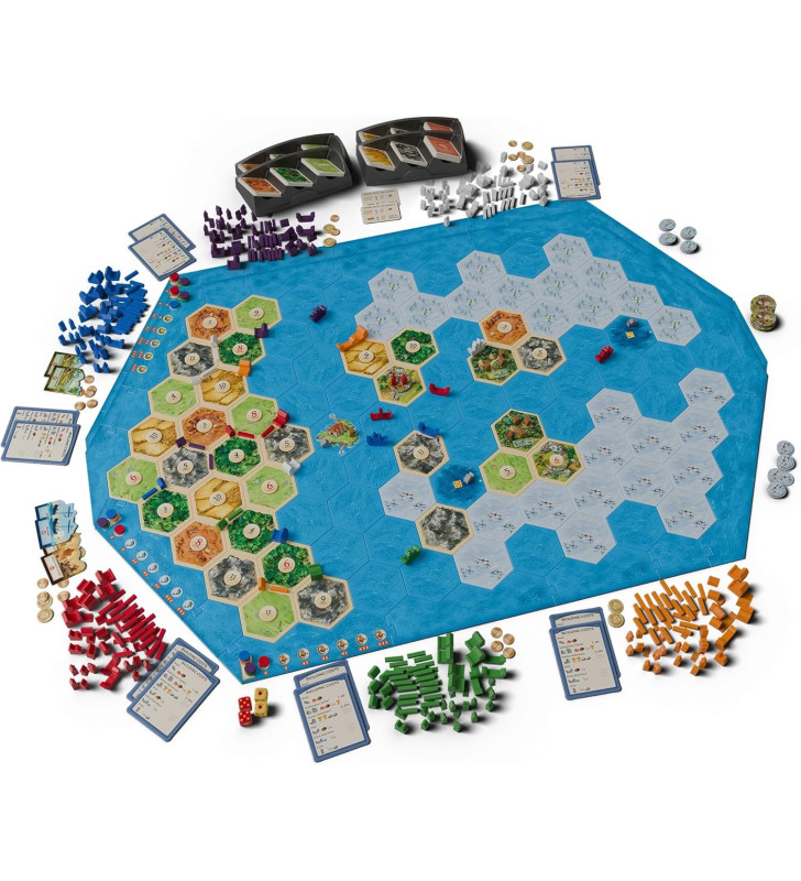This box allows you to expand your game and bring even more adventurers to the seas of Catan. Designed specifically to work with the Explorers & Pirates expansion, this extension lets up to two additional players join the exploration, increasing competition, strategy, and interaction.