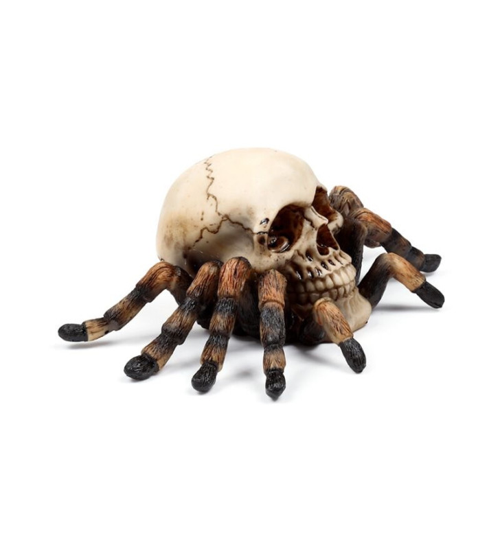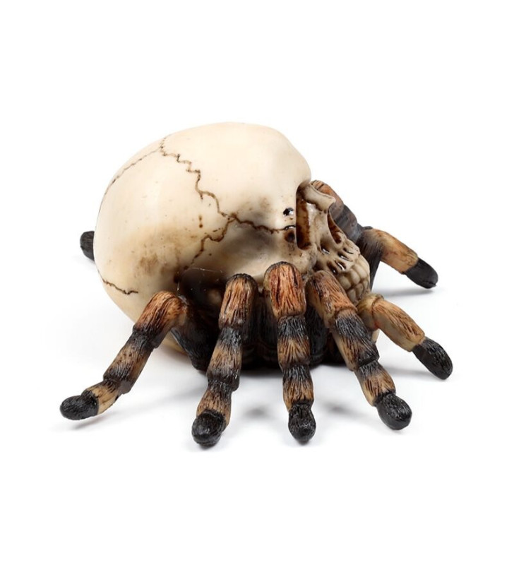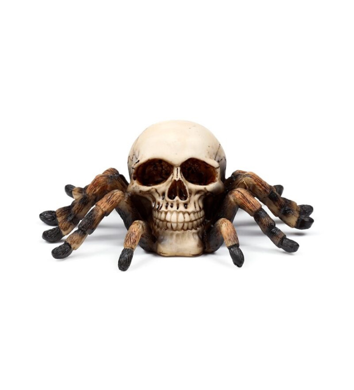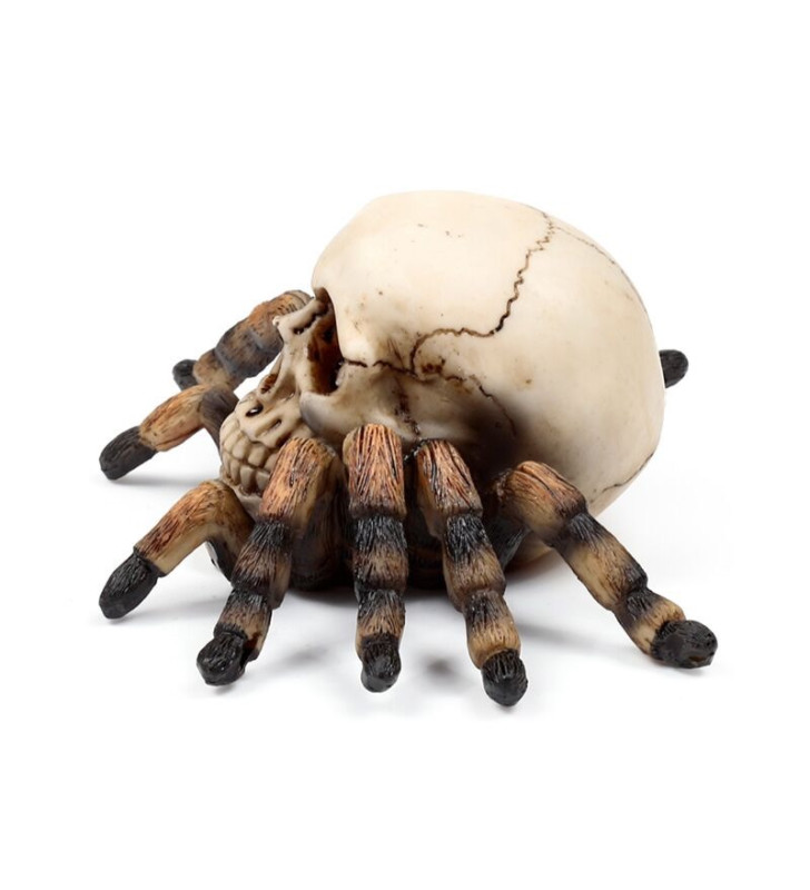 Creepy skull ornament with realistic spider legs, perfect for Halloween, gothic décor, or horror-themed displays.