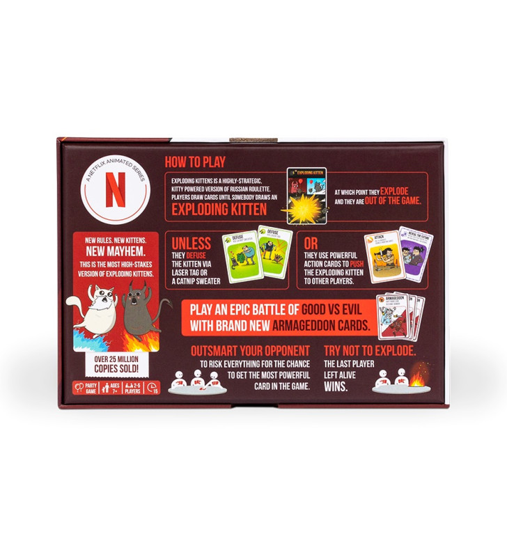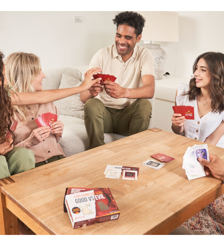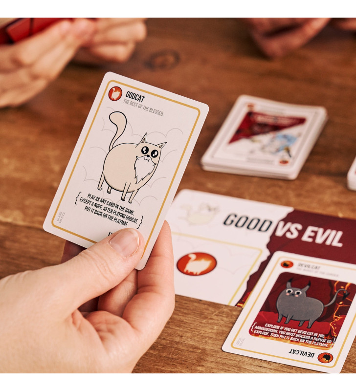 The most high-stakes version of Exploding Kittens yet, featuring new rules, new kittens, and epic Good vs Evil mayhem.