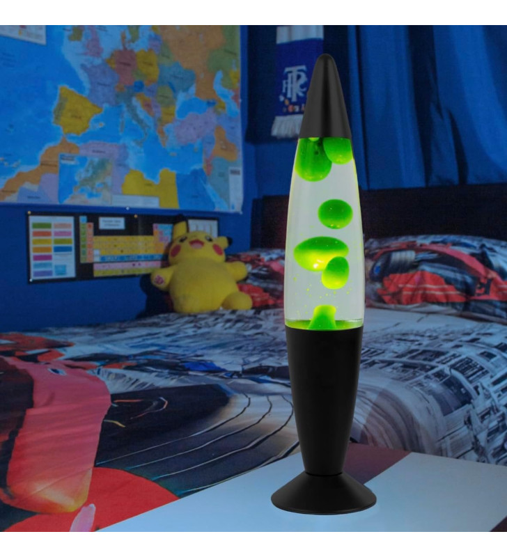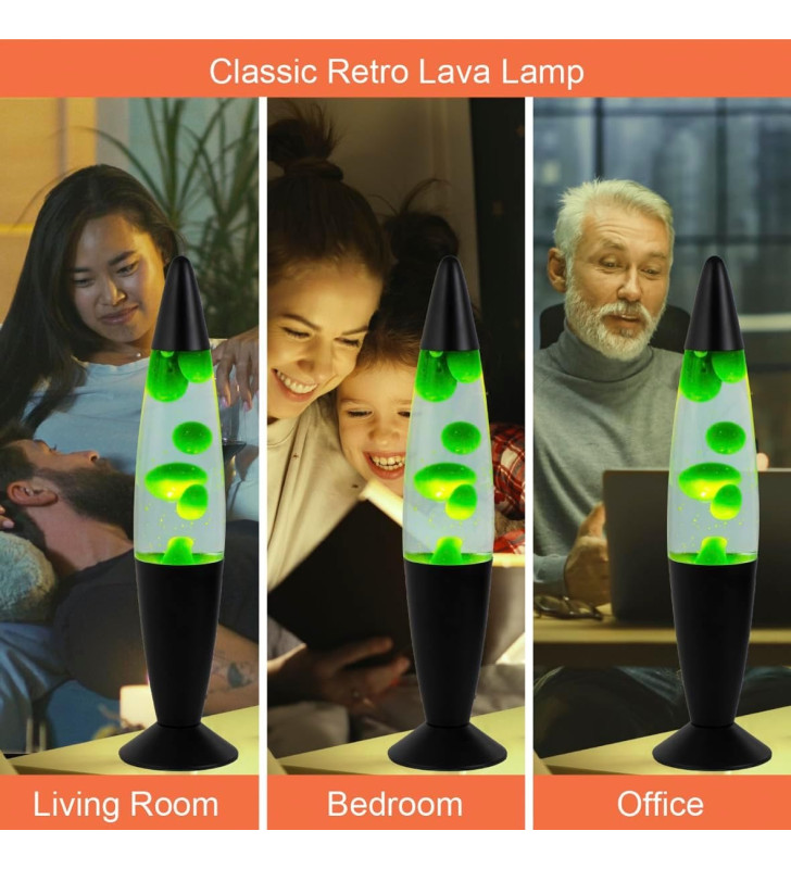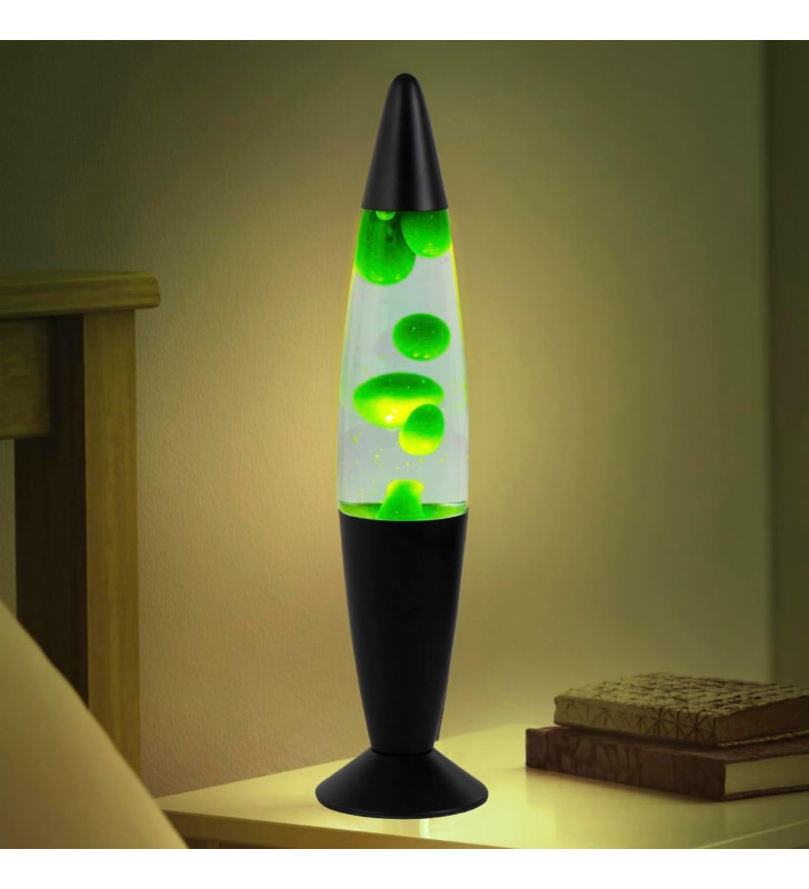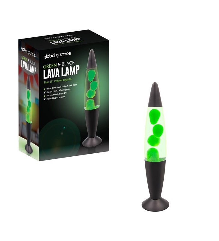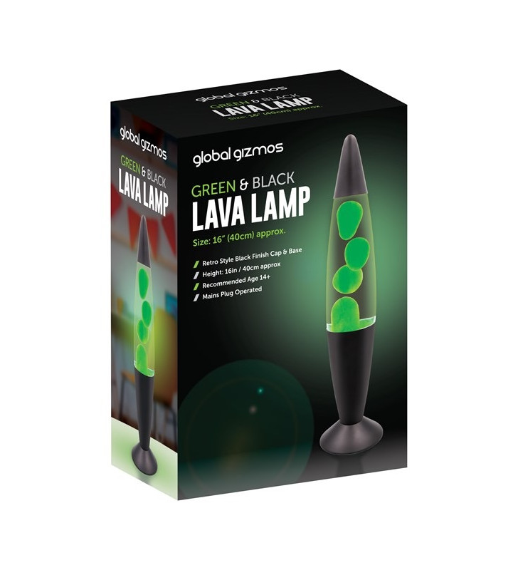 16-inch retro lava lamp with green wax and black base