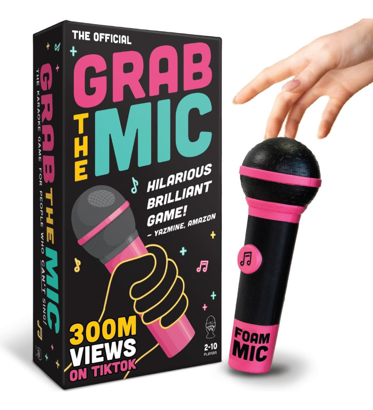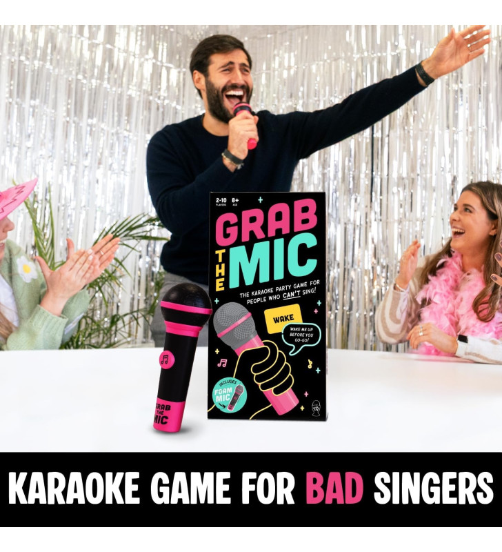 Grab the Mic is the ultimate karaoke-style party game for people who love music but can’t always carry a tune. Flip a card, reveal a word, and race to grab the foam microphone before your friends do. The challenge? You must sing a lyric from any song that contains the revealed word.