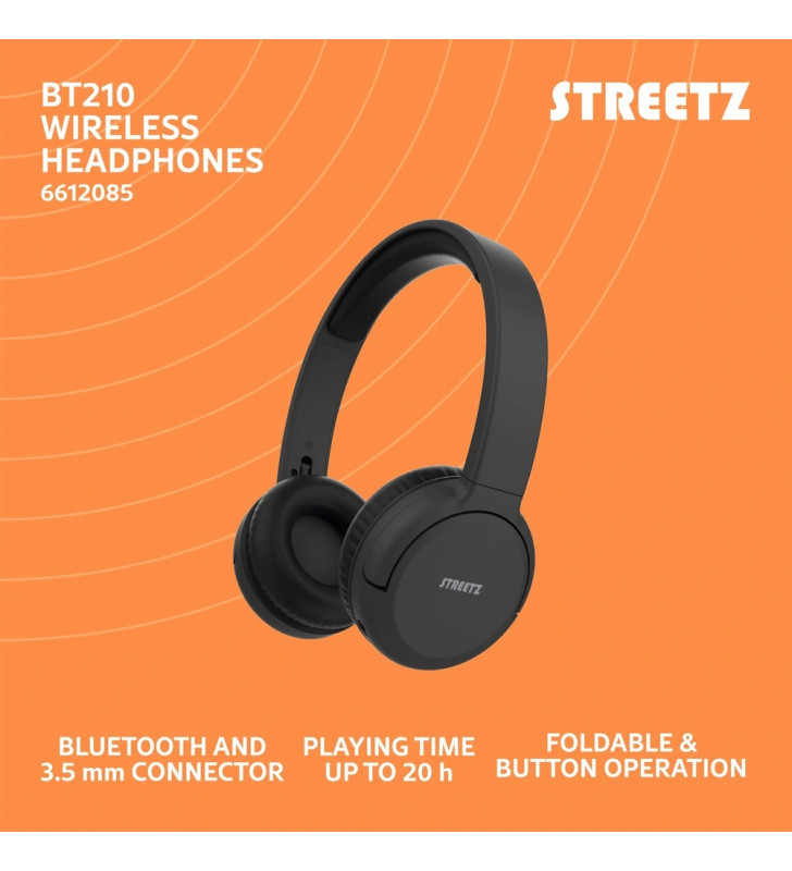 Upgrade your everyday listening with the Streetz BT210 Bluetooth On-Ear Headphones, designed for comfort, convenience, and reliable performance. Whether you’re commuting, studying, working out, or relaxing at home, the BT210s deliver clear sound and wireless freedom in a sleek, modern design.