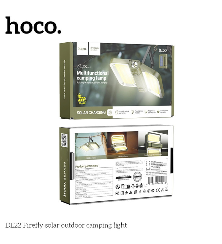 Light up your adventures with the Hoco DL22 Solar LED Camping Lamp, a versatile and reliable lighting solution designed for outdoor enthusiasts and emergency use. Combining high-performance LED illumination with eco-friendly solar charging, this lamp ensures dependable light wherever you go.