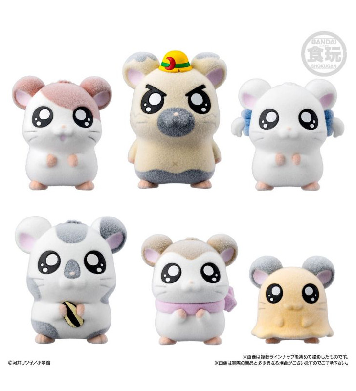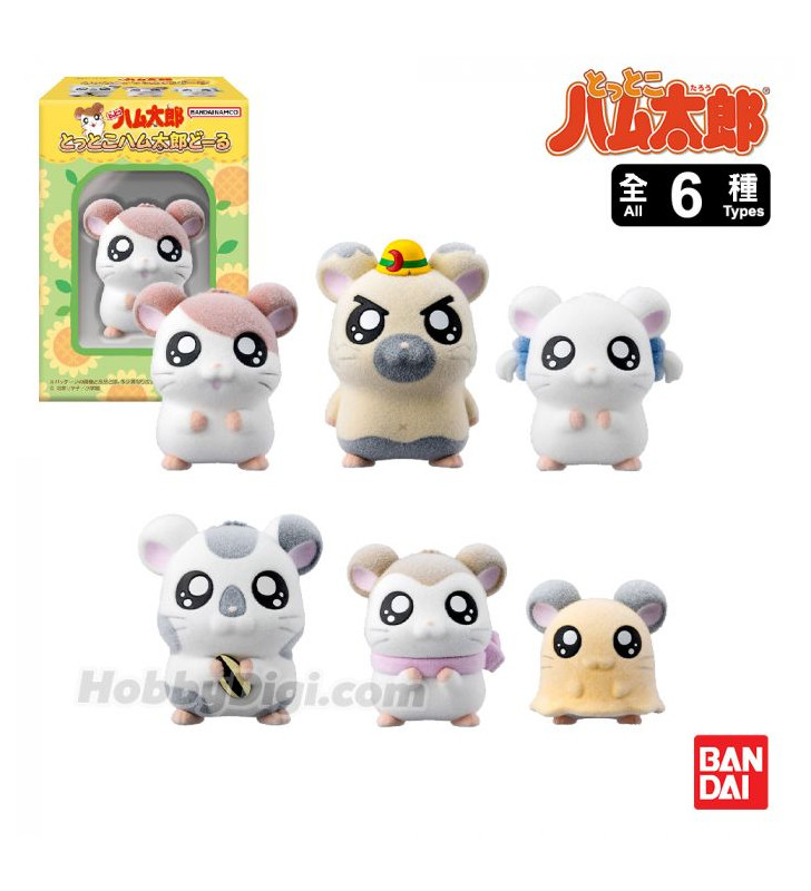 Bring the fuzzy charm of your favourite Tottoko Hamtaro characters to life with this genuine Bandai Hamtaro Hamster Collection Ornament Set. This adorable 6-piece kawaii anime figure collection features beautifully detailed mini hamster characters, each standing approximately 4cm tall and finished with a soft flocked texture for an irresistibly cute feel. From the adventurous Hamtaro to his sweet hamster friends, each figure comes with its own display stand, making them perfect for desks, shelves, gaming setups, or anime collections. Please note: characters are packed at random, adding a fun surprise element for collectors and traders.