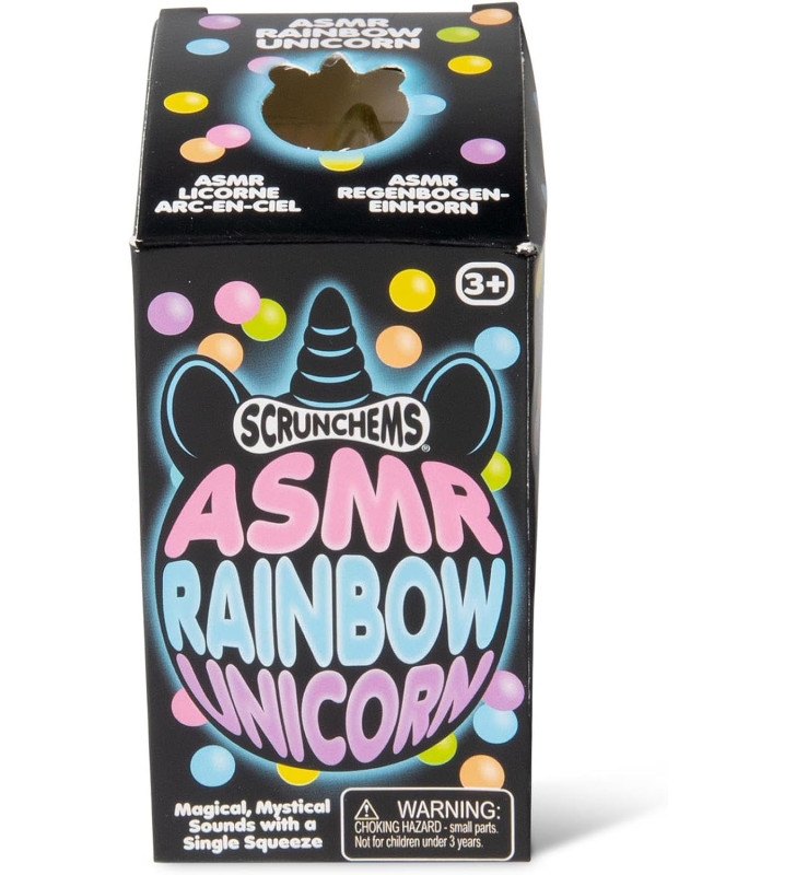 Meet the magical Scrunchems ASMR Rainbow Unicorn – a soft, squishy sensory toy filled with vibrant rainbow beads that create soothing ASMR sounds and satisfying stress-relief squeezes.