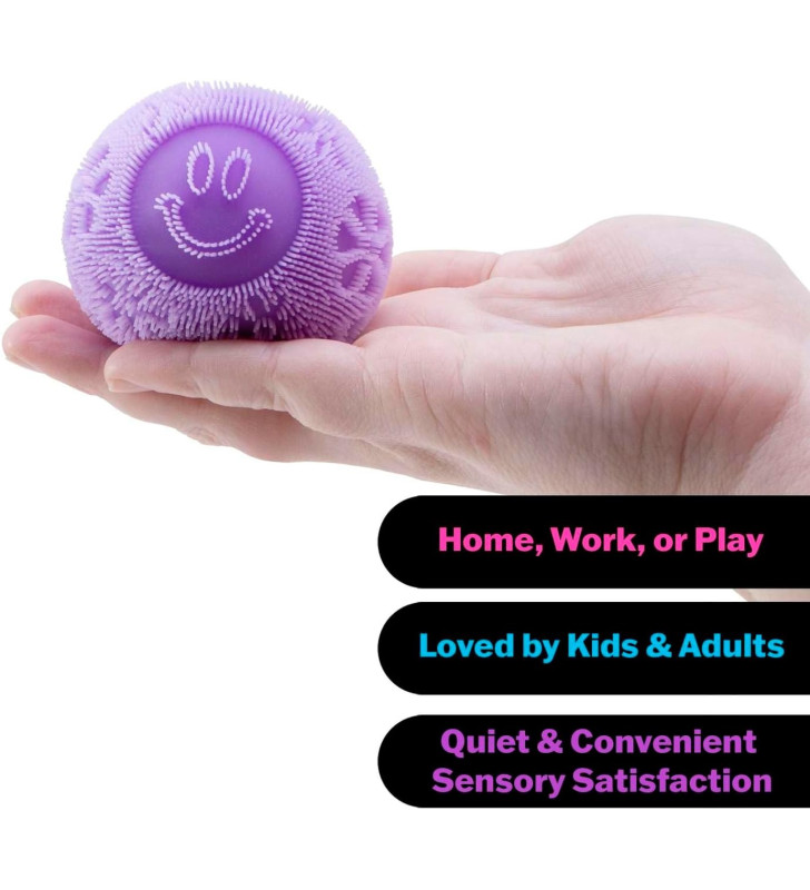 - Silky-soft fuzzy stress ball with a satisfying squish.