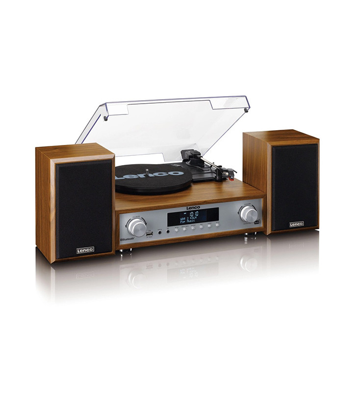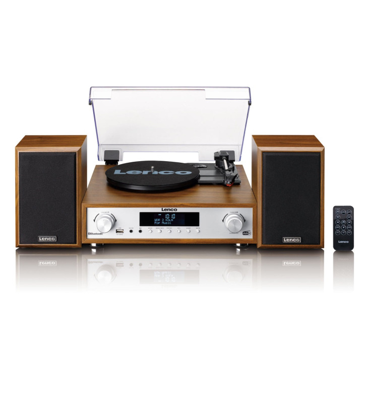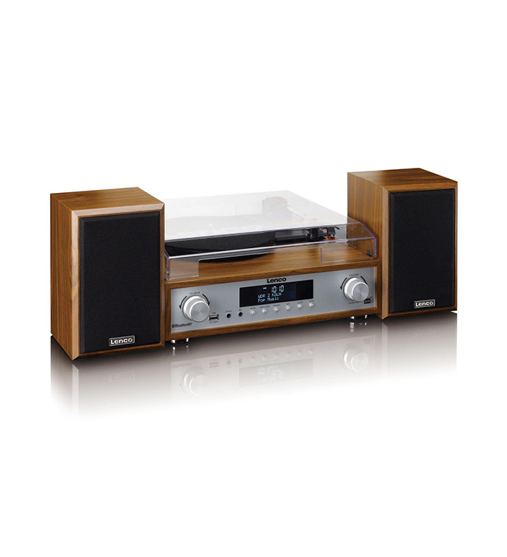 The Lenco MC-160WD Turntable HiFi System combines classic vinyl listening with modern wireless technology. Designed with an elegant wood finish and two matching wooden speakers, this all-in-one system delivers rich, balanced sound while adding a stylish touch to any room.