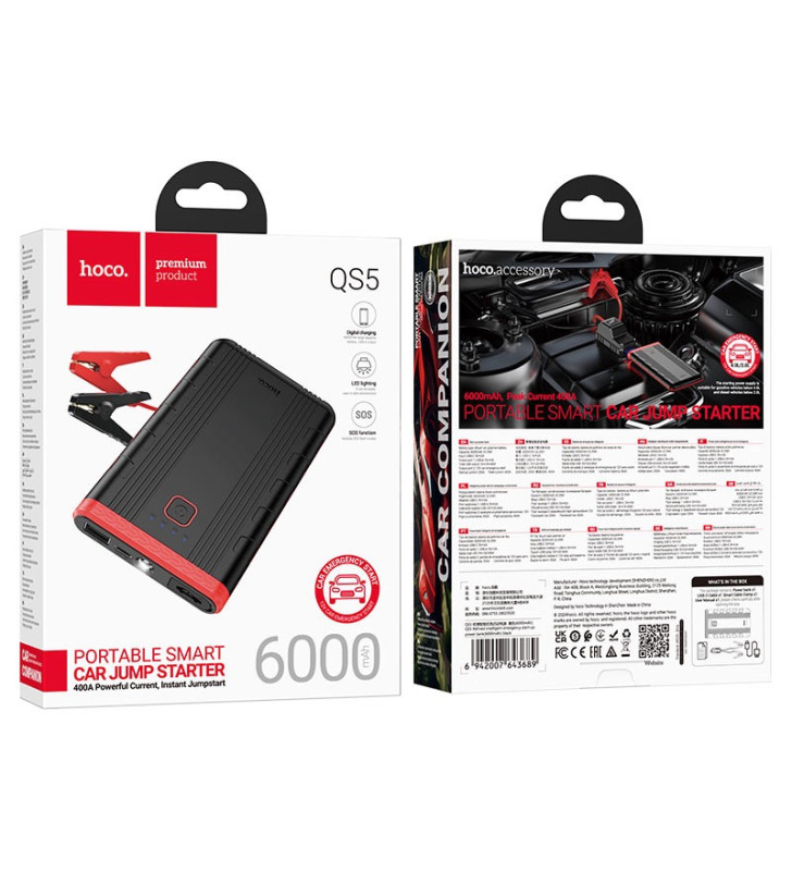 Stay prepared for emergencies with the Hoco QS5 Portable Smart Car Jump Starter. This compact and powerful device works as both a car emergency starter and a mobile power bank, making it an essential companion for every driver.