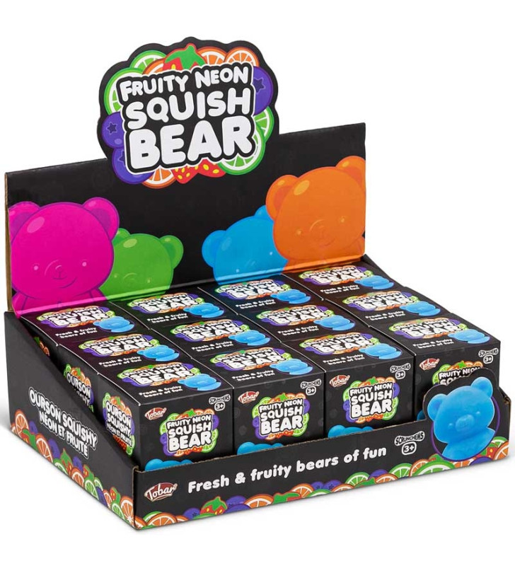 Perfect for sensory play, stress relief, party bags, small gifts, or collecting, Scrunchems Fruity Neon Squish Bears are a fun and engaging toy for children aged 3 years and up. Colours and styles are supplied at random, making every bear a surprise.