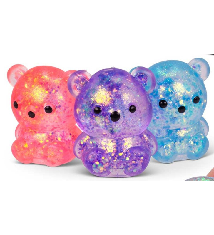 Super cute glittery teddy bear squishies in a 3 pack—perfect for stress relief, sensory play, and fun for all ages.